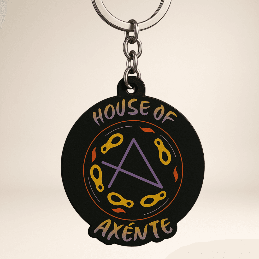 Take the spirit of the dancefloor with you — wherever you go. This sleek and lightweight keychain is crafted with a polished metal finish and detailed with the official House of Axénte emblem: the groove-inspired “A” surrounded by infinity flames and motion lines.